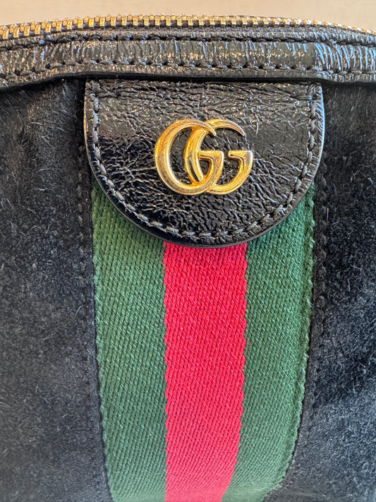 GUCCI Small Black Suede Ophidia Crossbody Bag