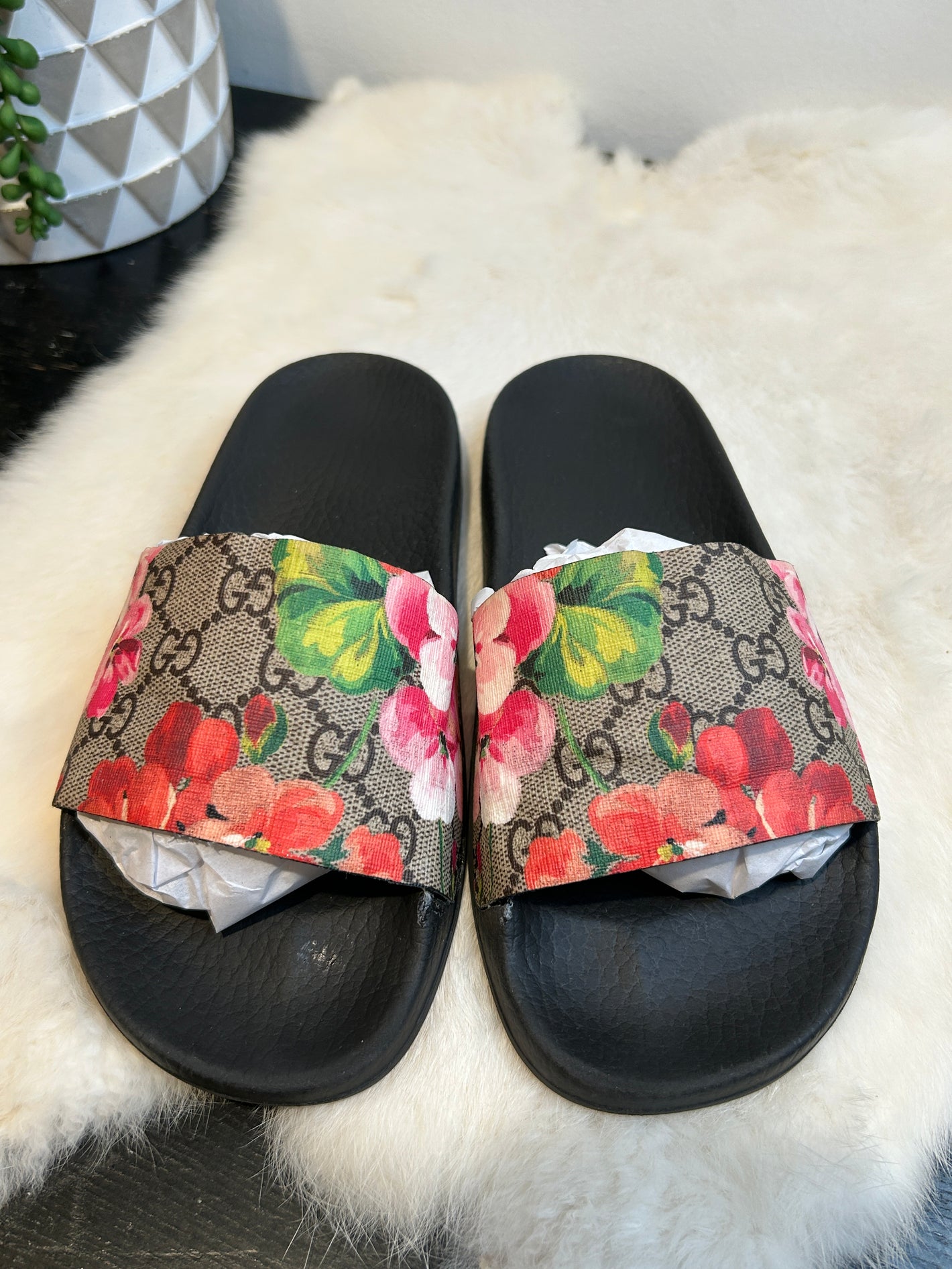 Jennifer (WA.)🌟🌟🌟🌟🌟 I purchased 2 pairs of Gucci Slides before my vacation in March 2024. Took both pairs. I would say lightly used, great condition and even better price. I'll be loving these for at least this spring and summer. You are a fantastic seller and have a great collection of pieces ❤️