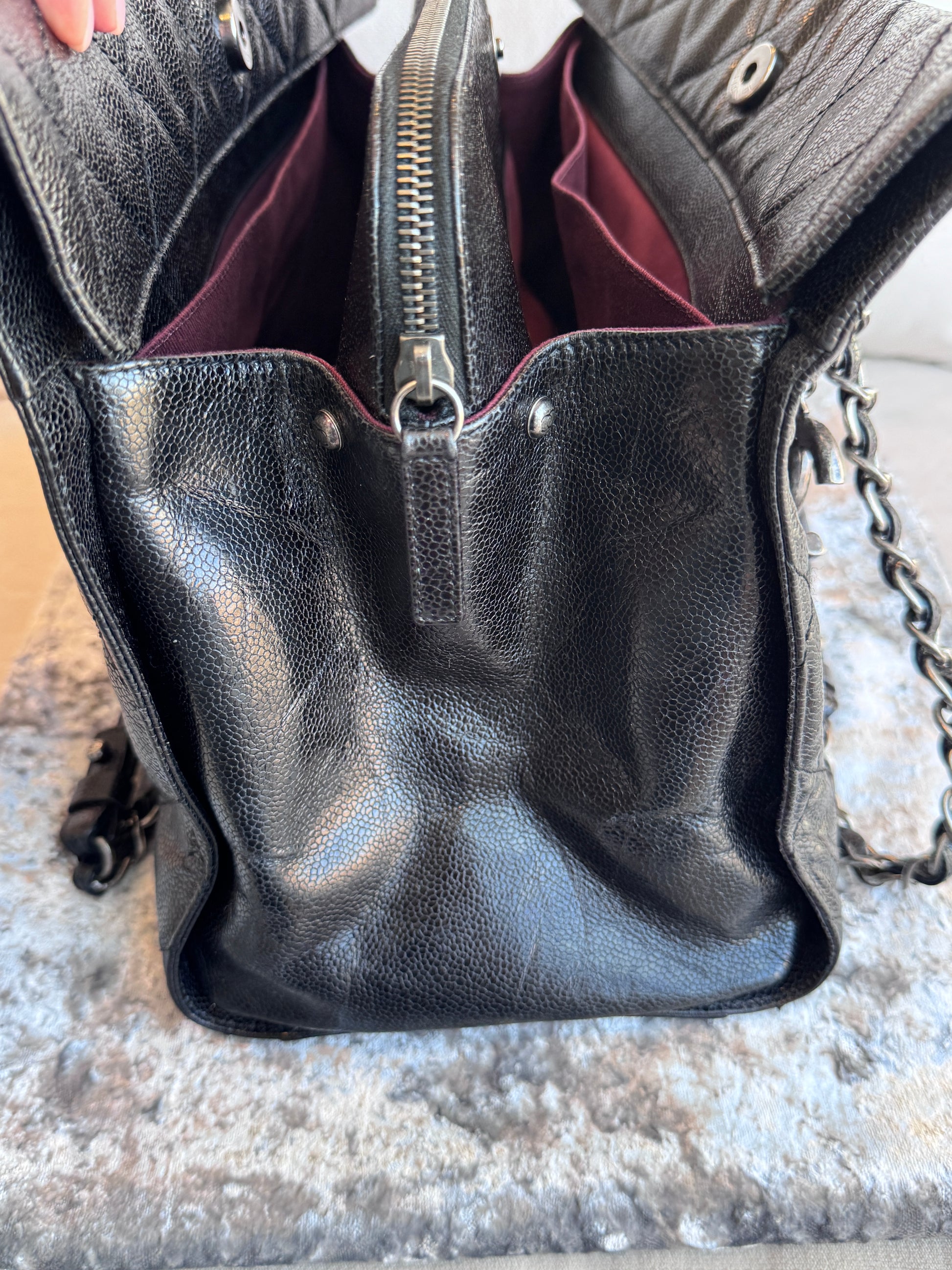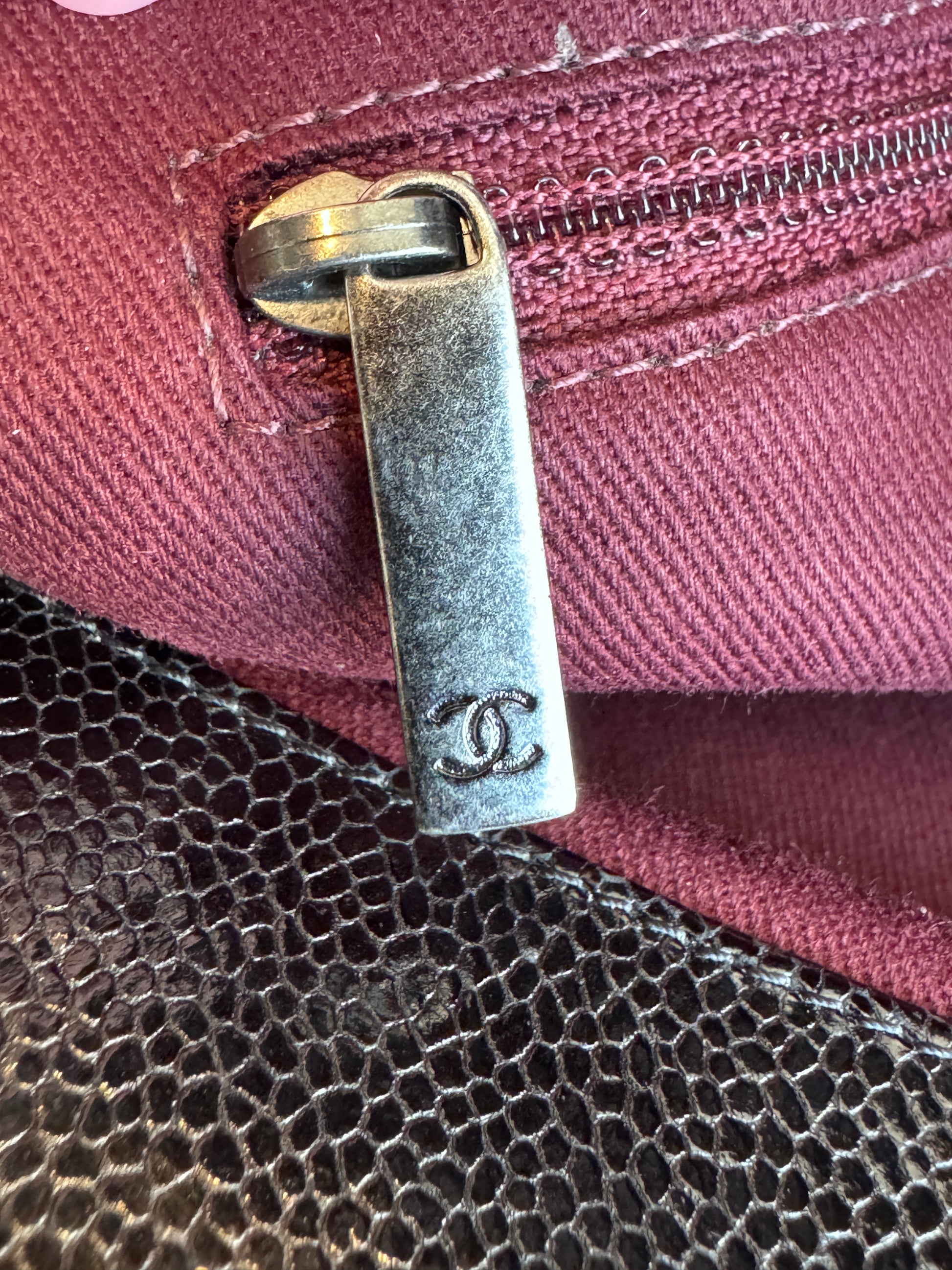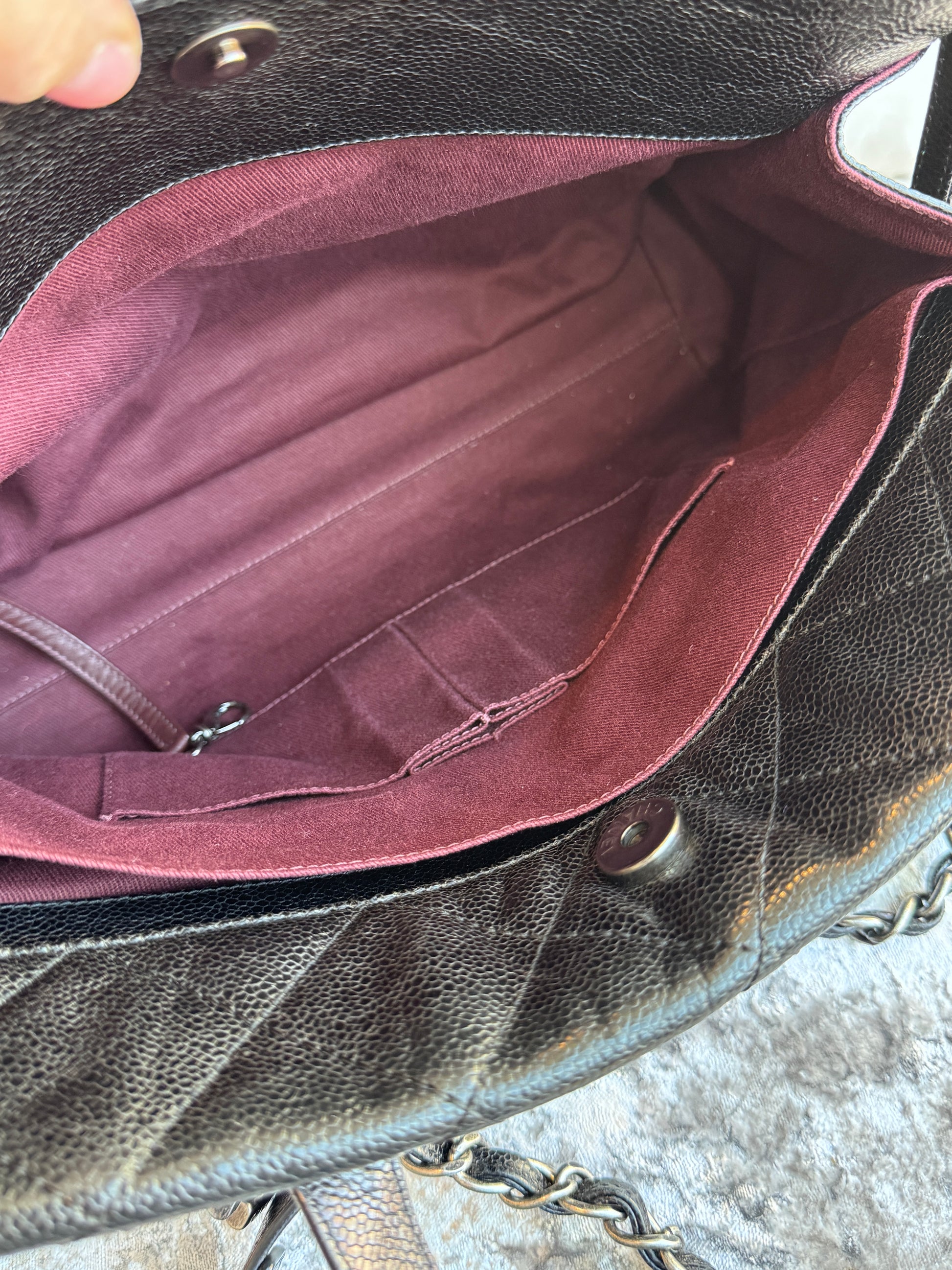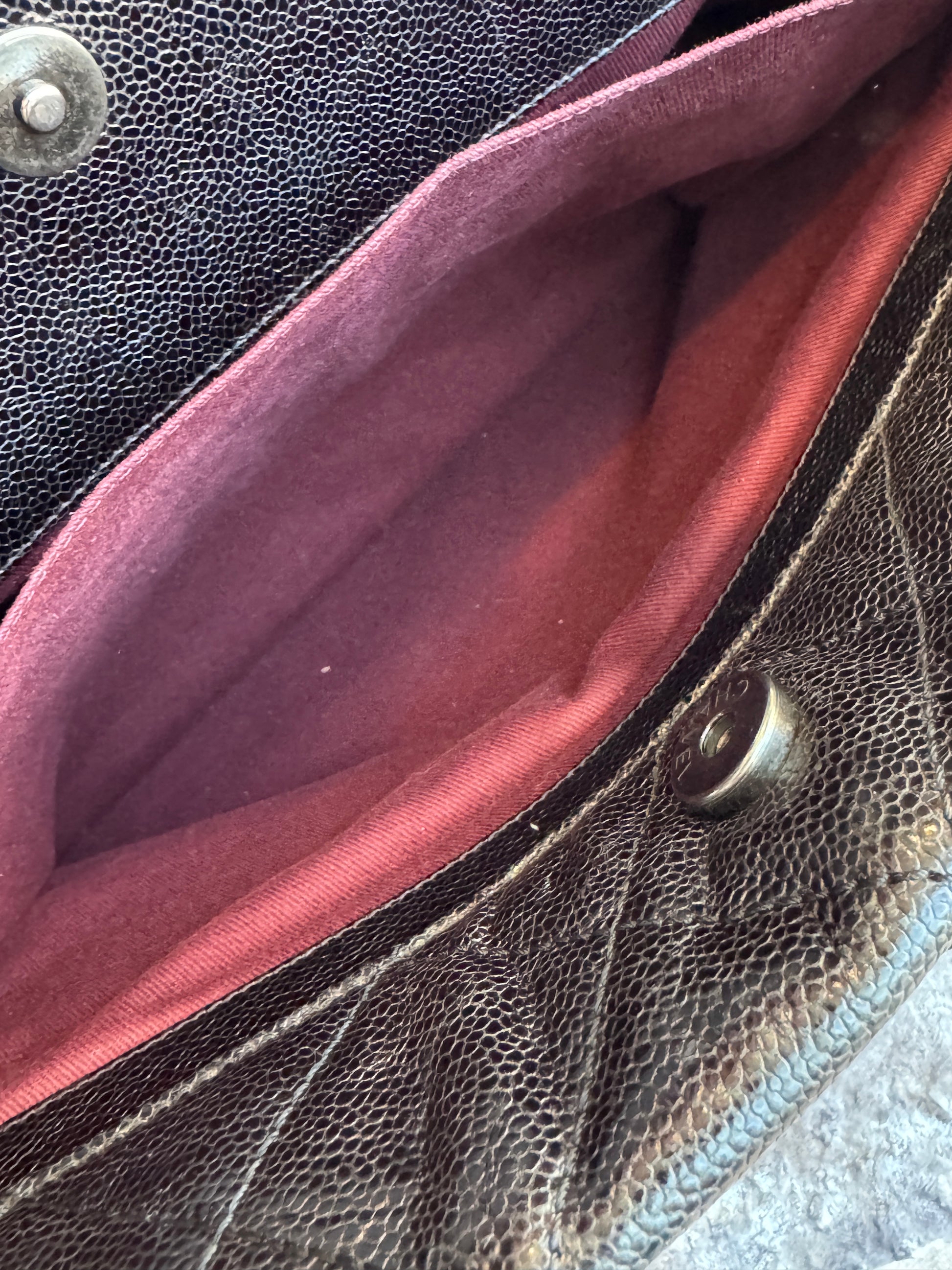 Exterior Leather: Excellent overall condition. Glazed caviar leather remains supple with vibrant color and structure. Light natural creasing consistent with normal gentle use. No major flaws or heavy wear observed.