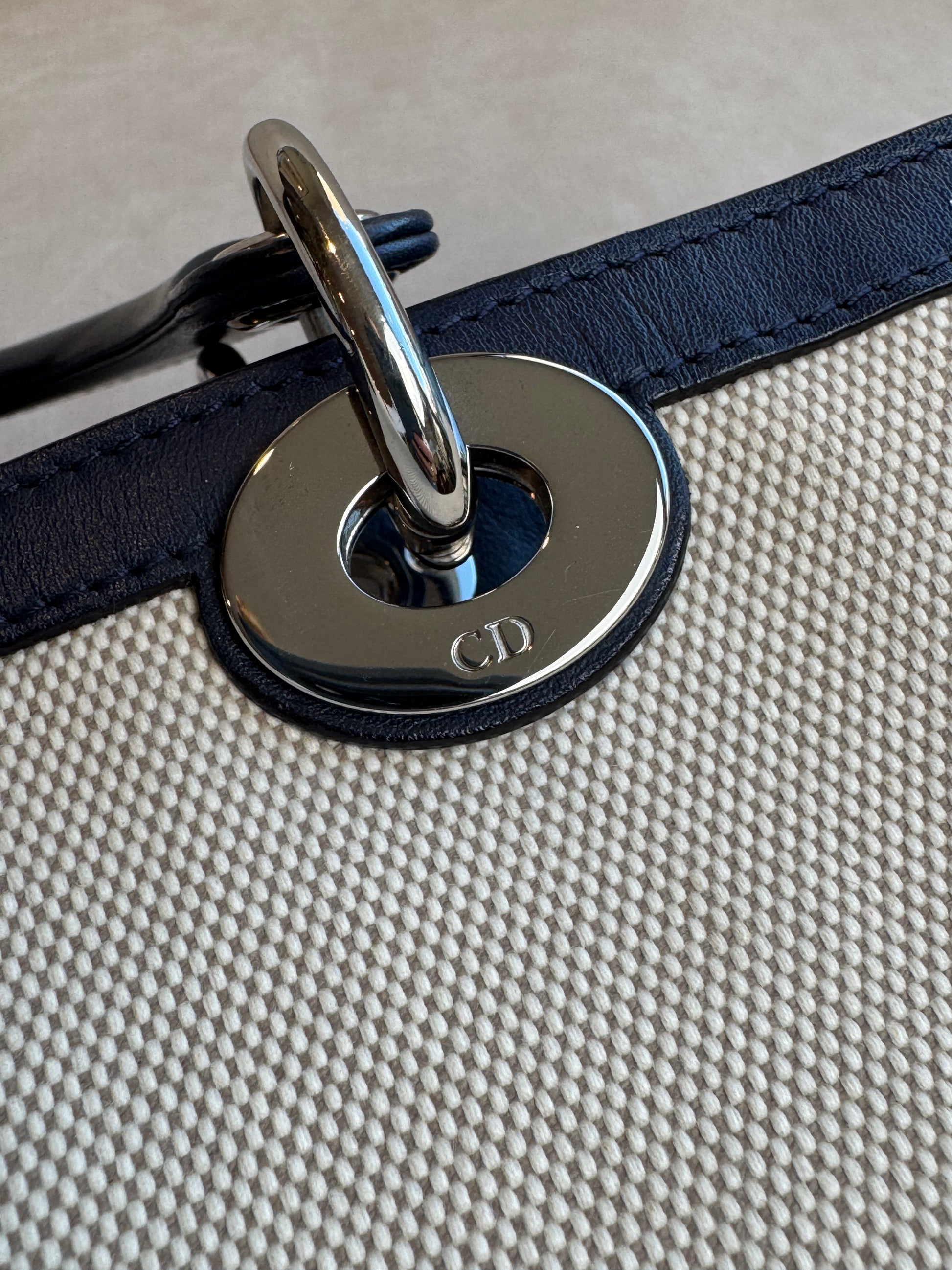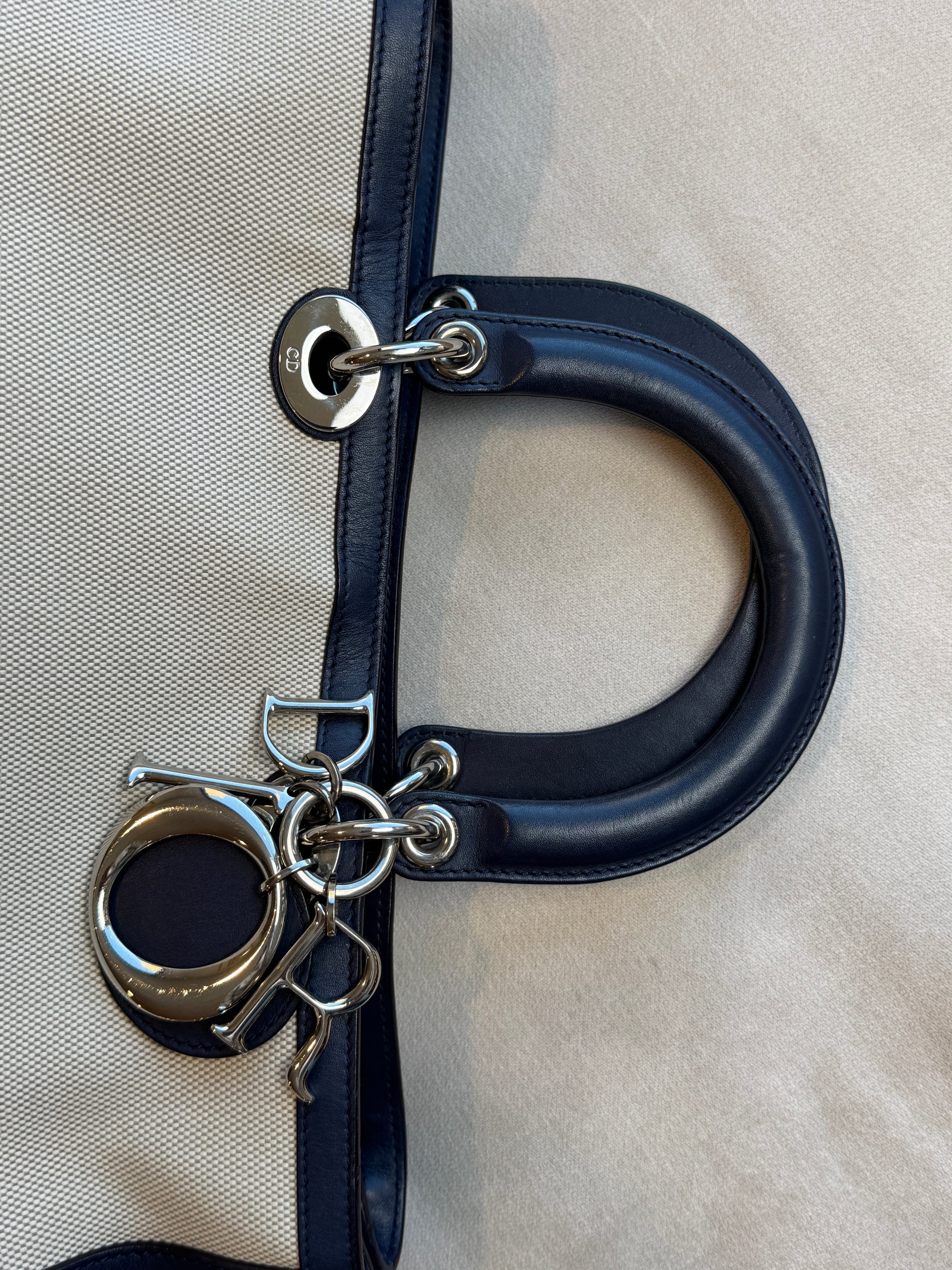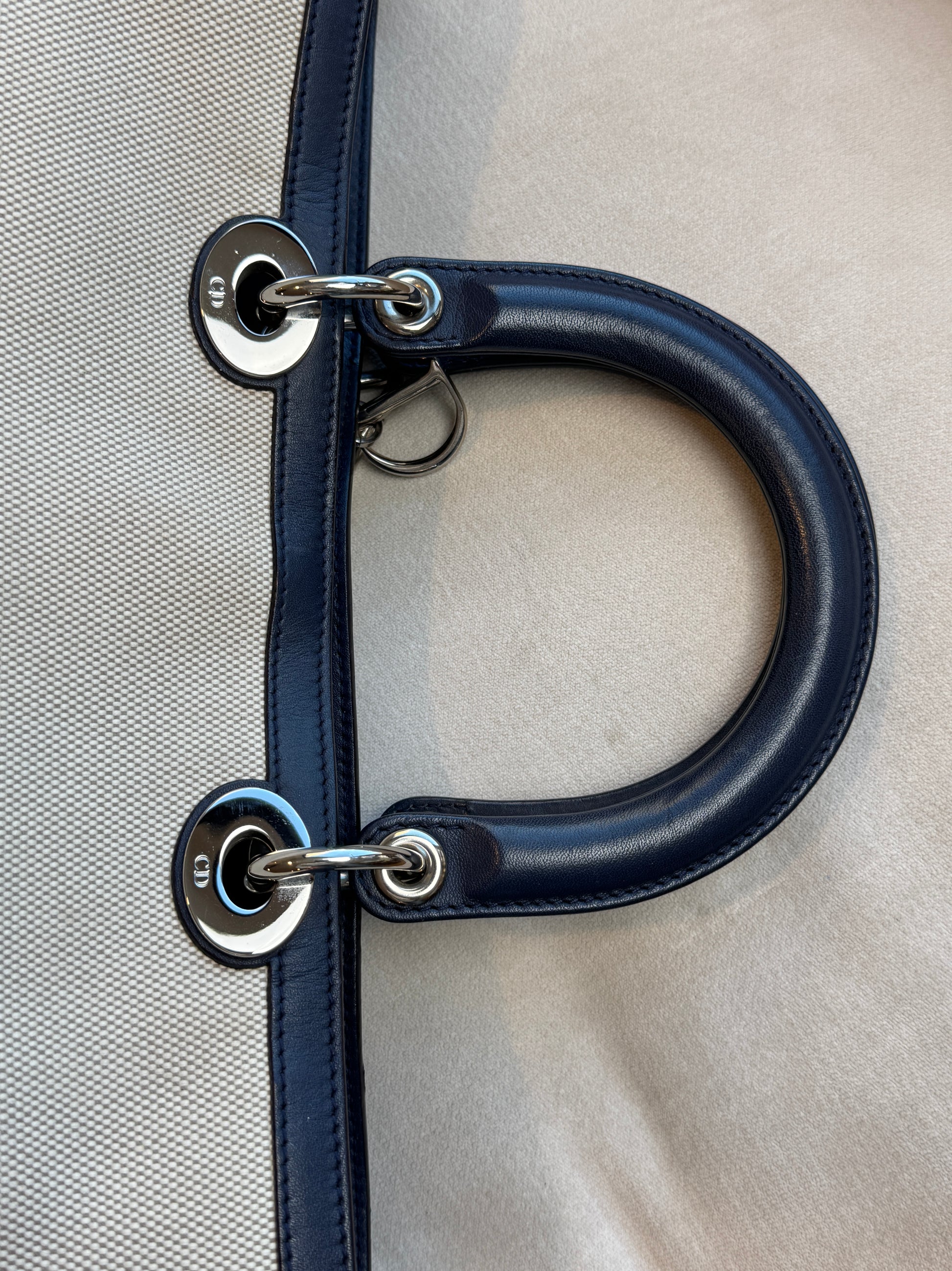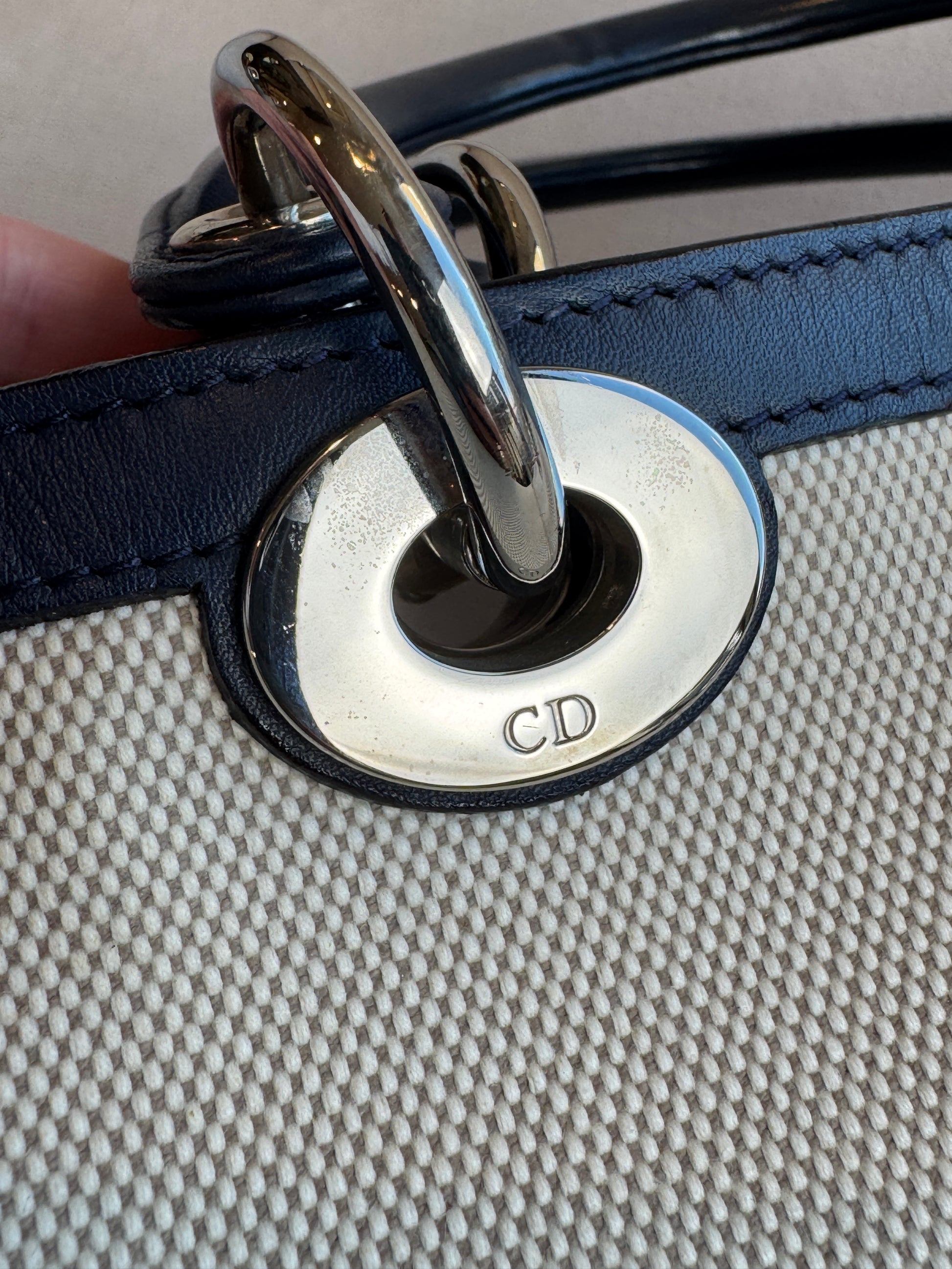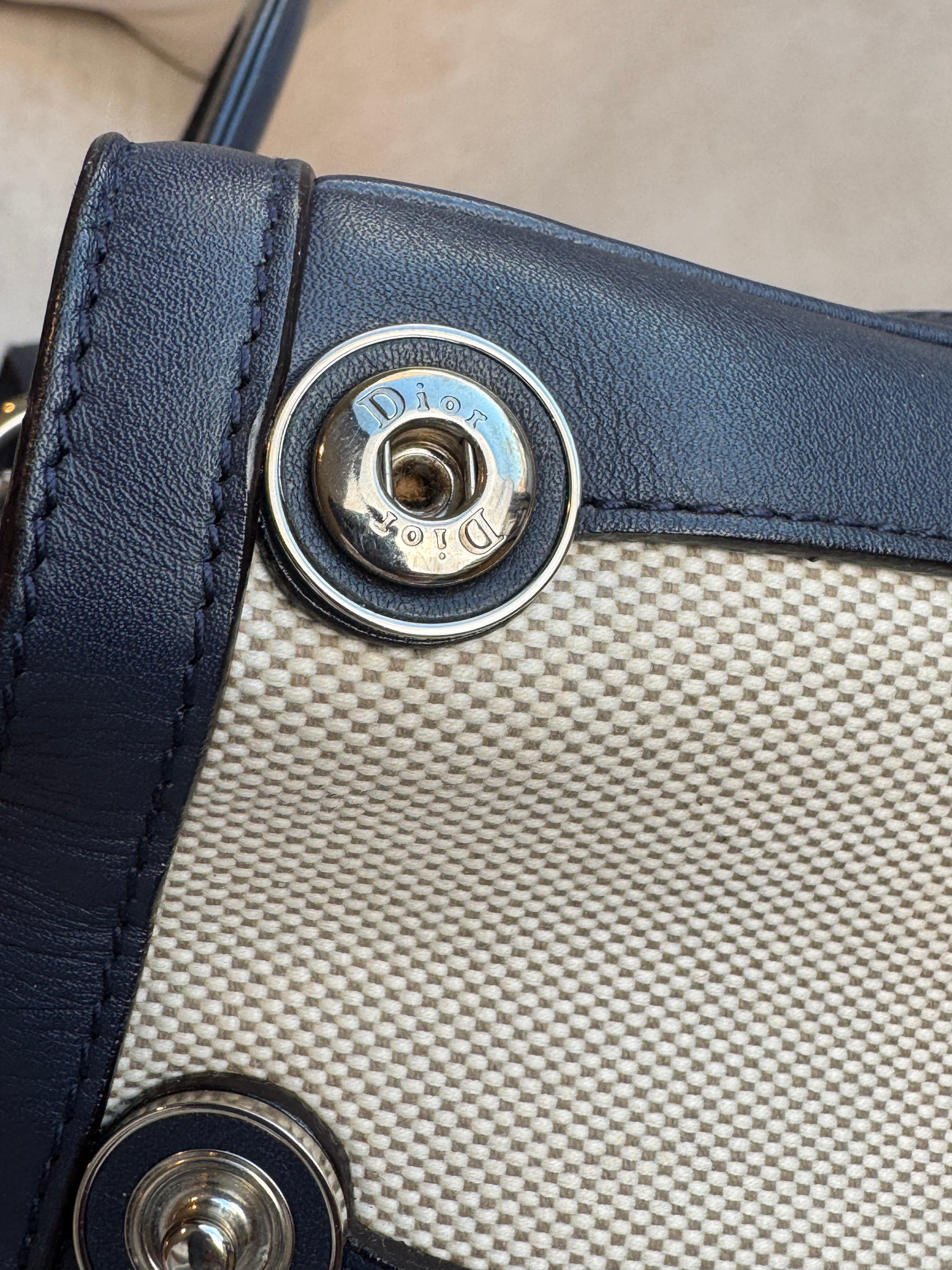 Dior Navy Canvas and Leather Large Diorissimo Tote Tan/Navy