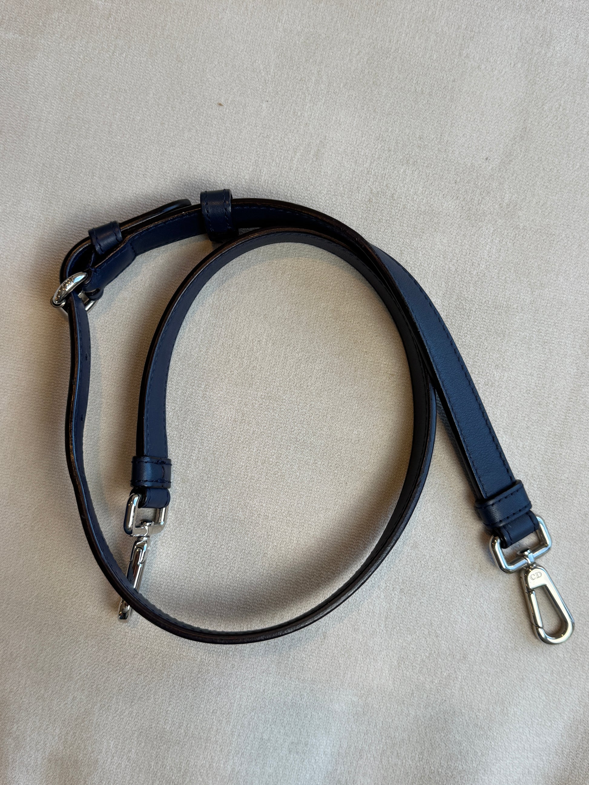 Handles: Double rigid leather handles and detachable, adjustable leather shoulder strap