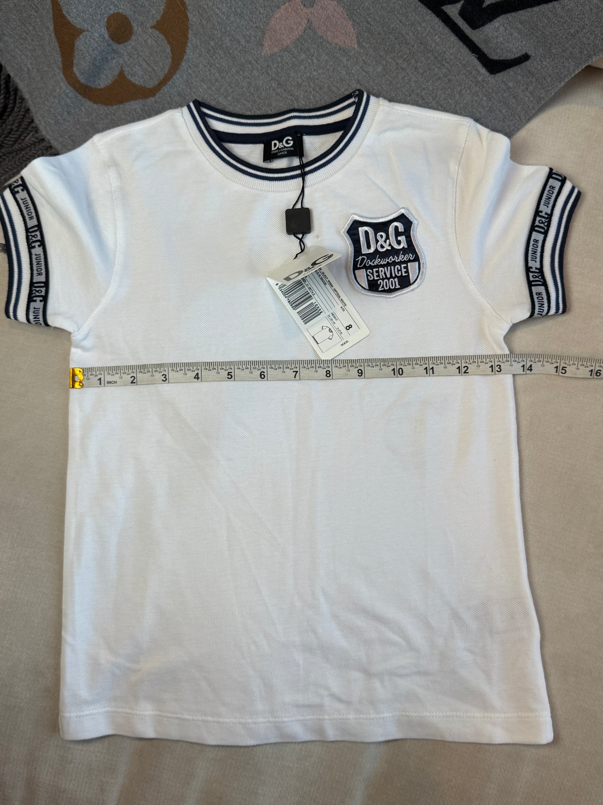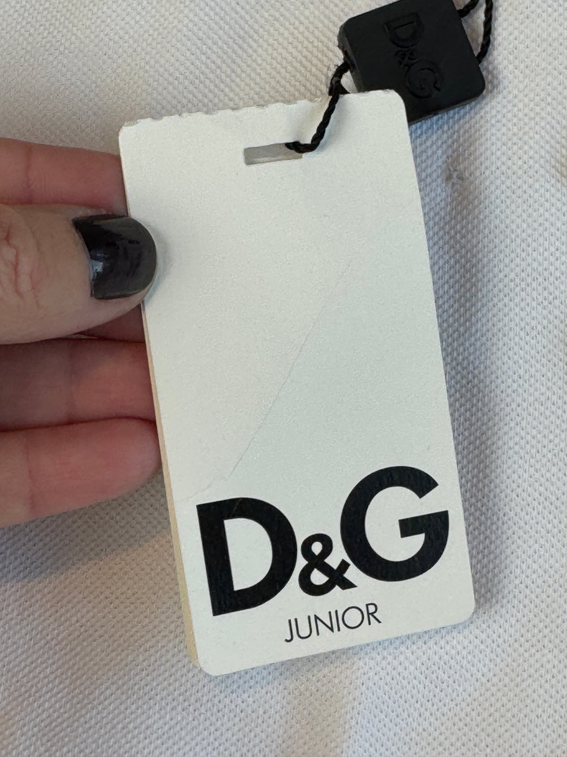 Dolce & Gabbana White/Navy Pique Polo T-Shirt Size 7/8