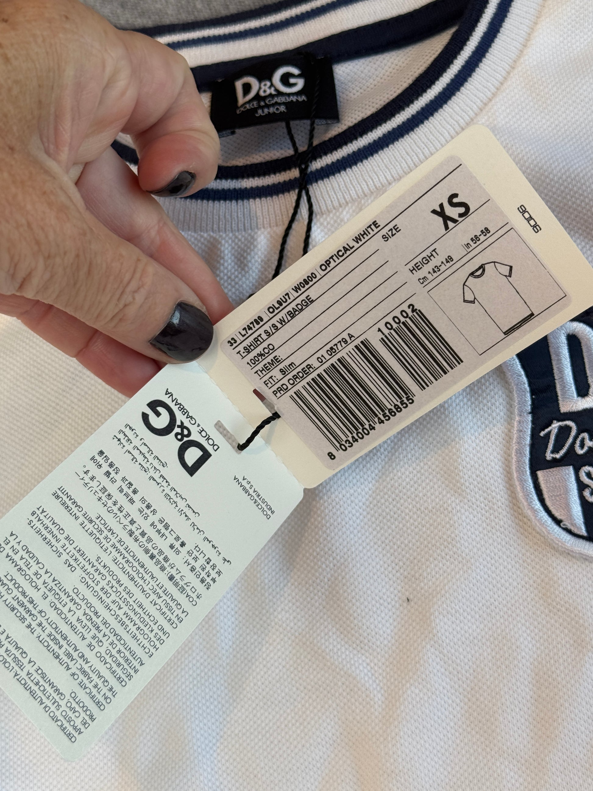 Dolce & Gabbana White/Navy Pique Polo T-Shirt Size XS