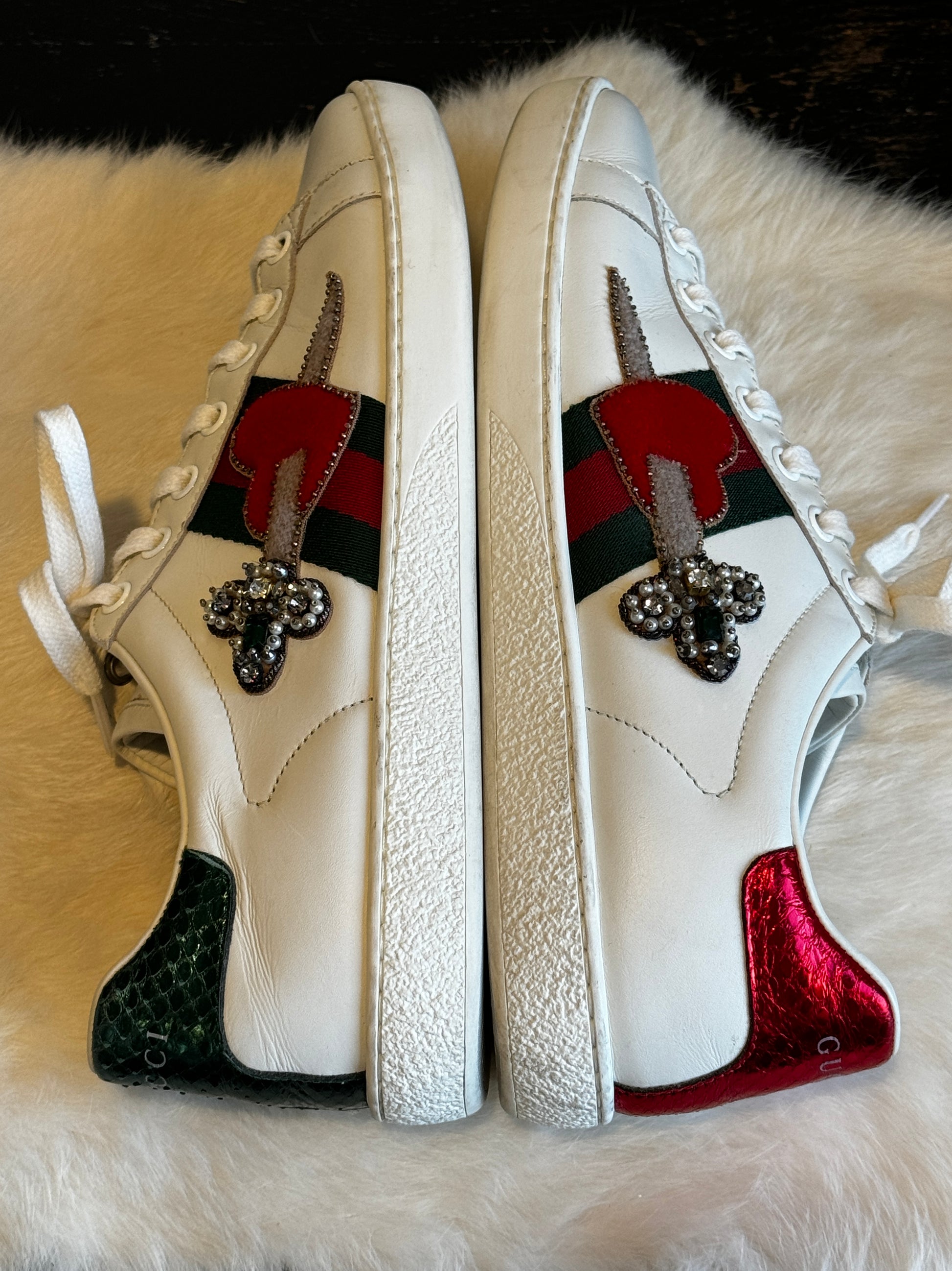 GUCCI Ace Rhinestone Sword Hearts Sneakers 38EU
