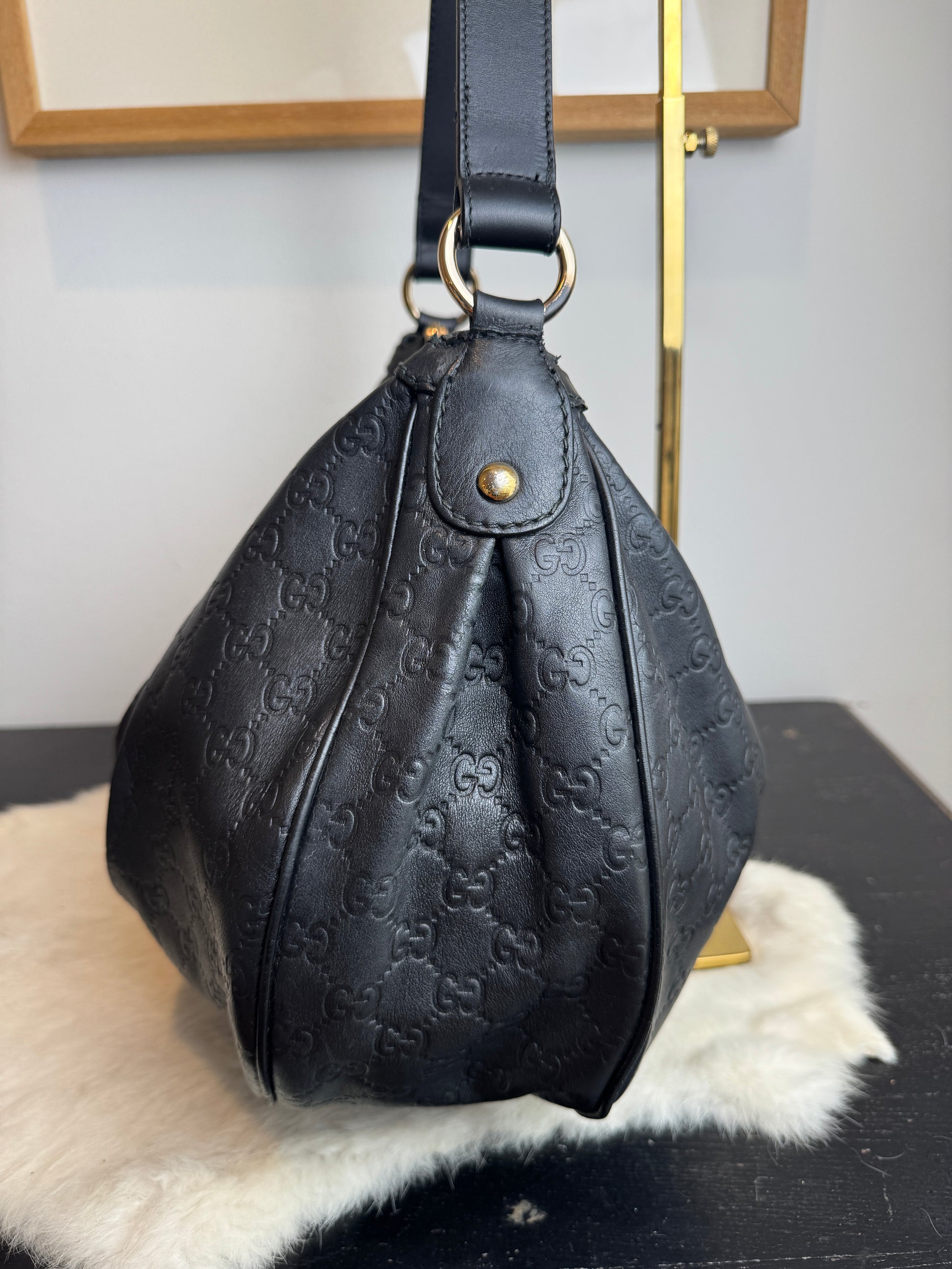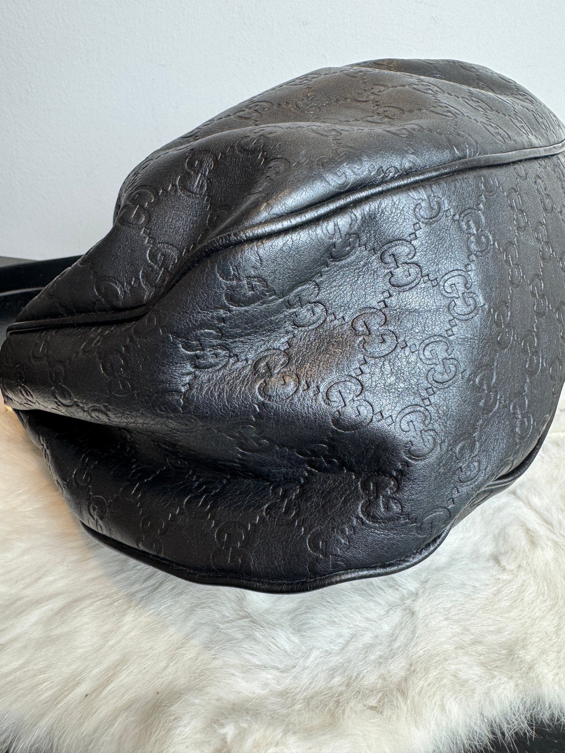 GUCCI Black Guccissima Leather Sukey Original Hobo Bag