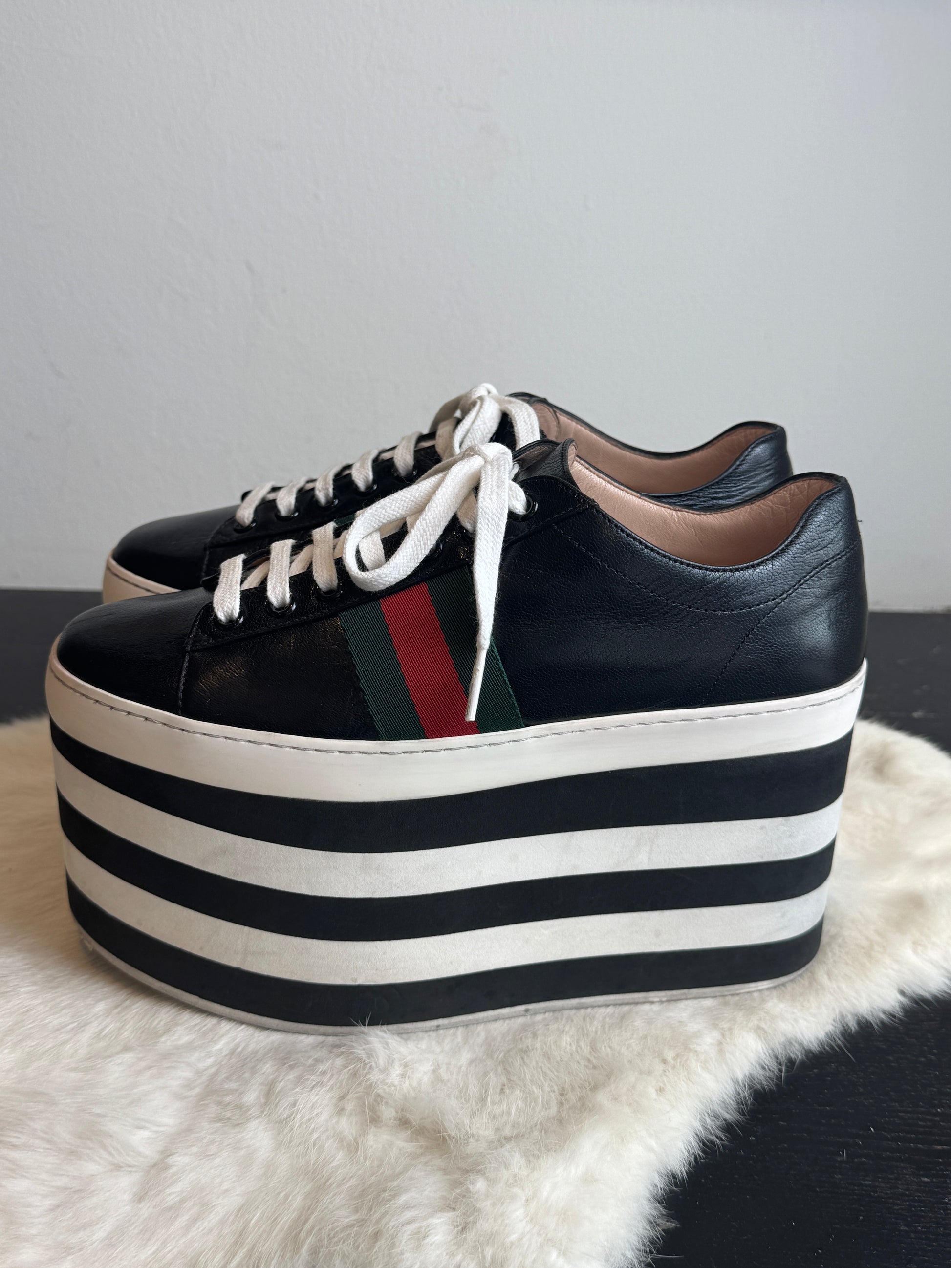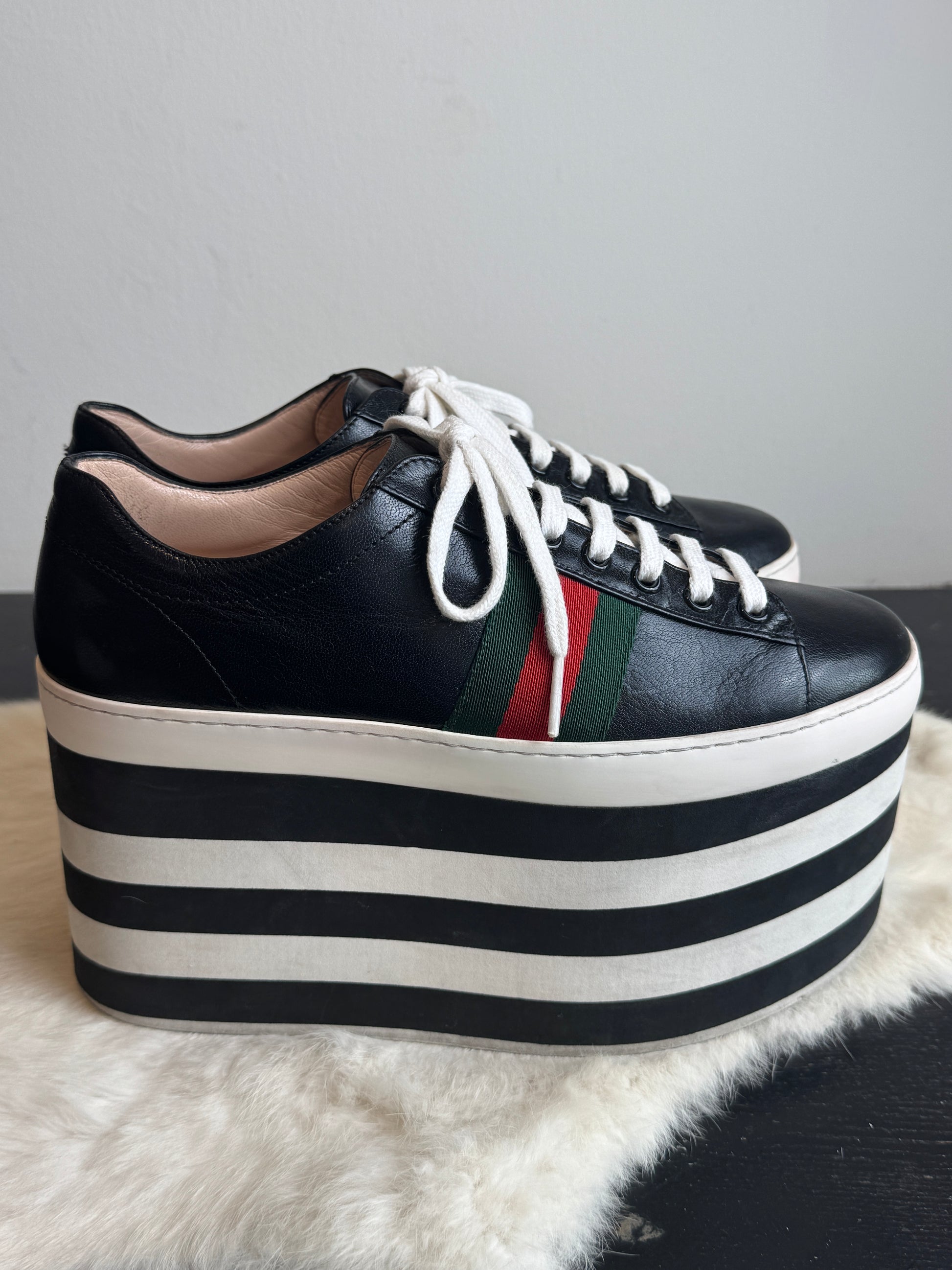 GUCCI Black Peggy Platforms Women's 37.5EU
