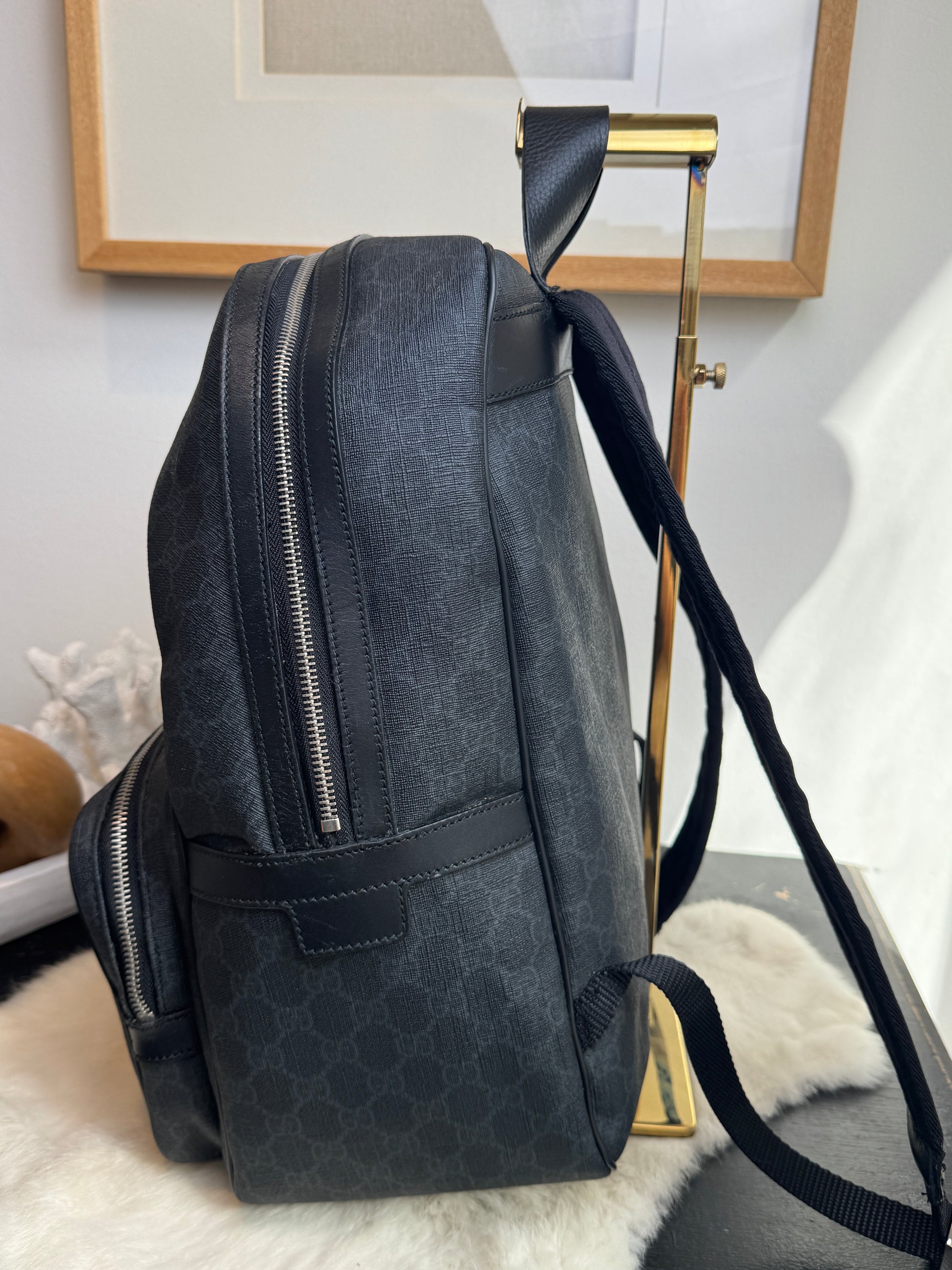 GUCCI Large Black GG Supreme Coated Canvas Backpack