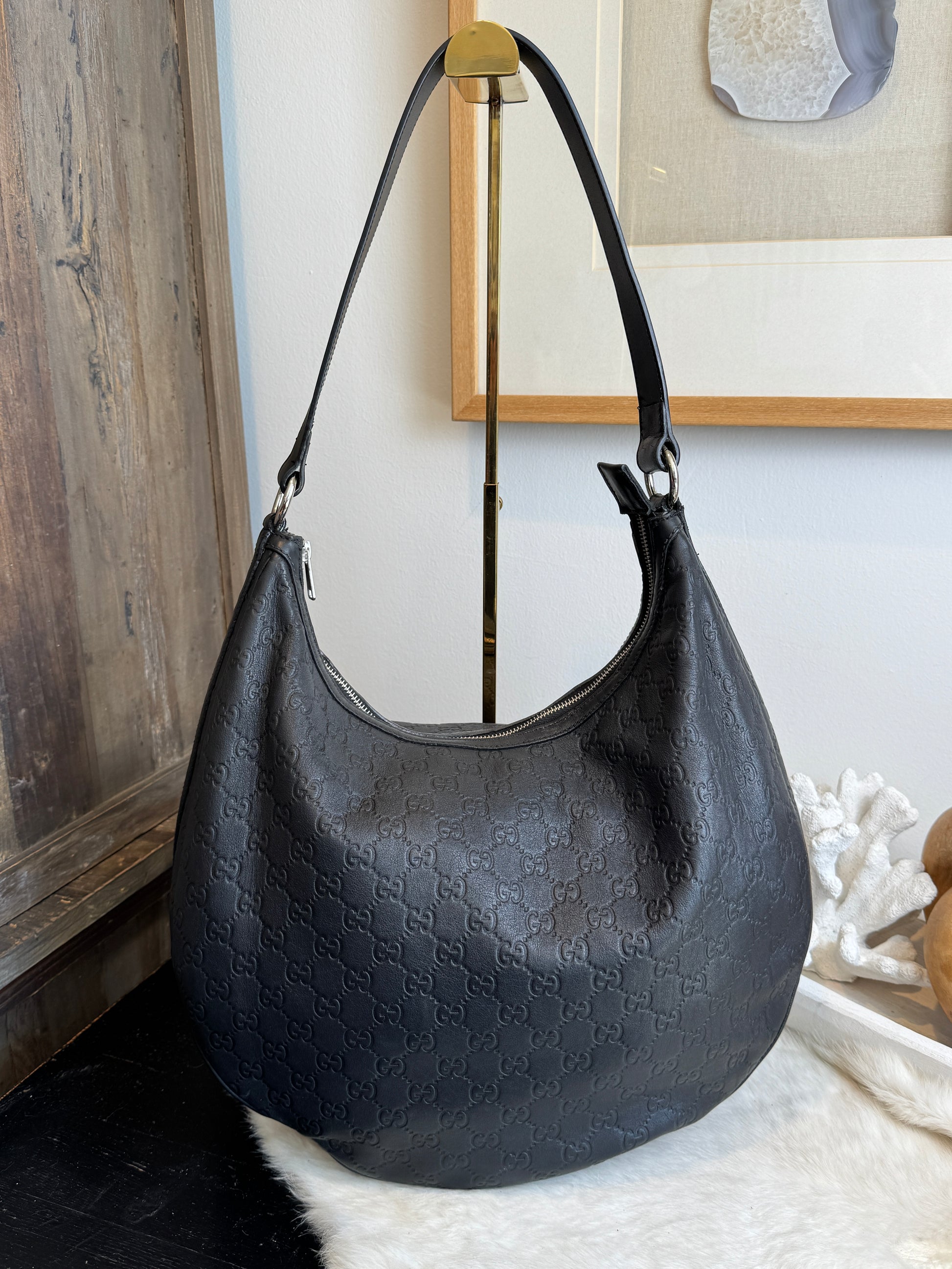 100% Authentic Guccissima Signature Black Leather Hobo