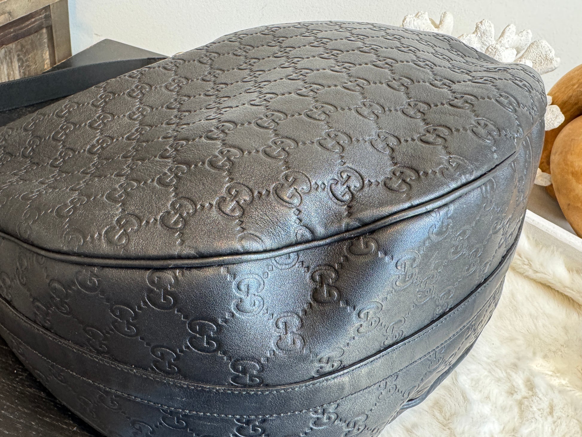 GUCCI Large Guccissima Signature Black Twins Leather Hobo