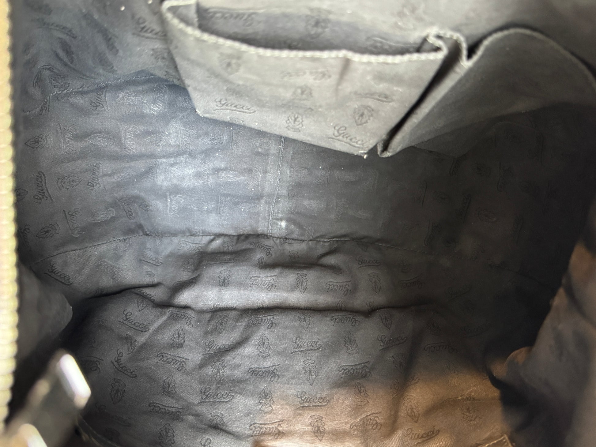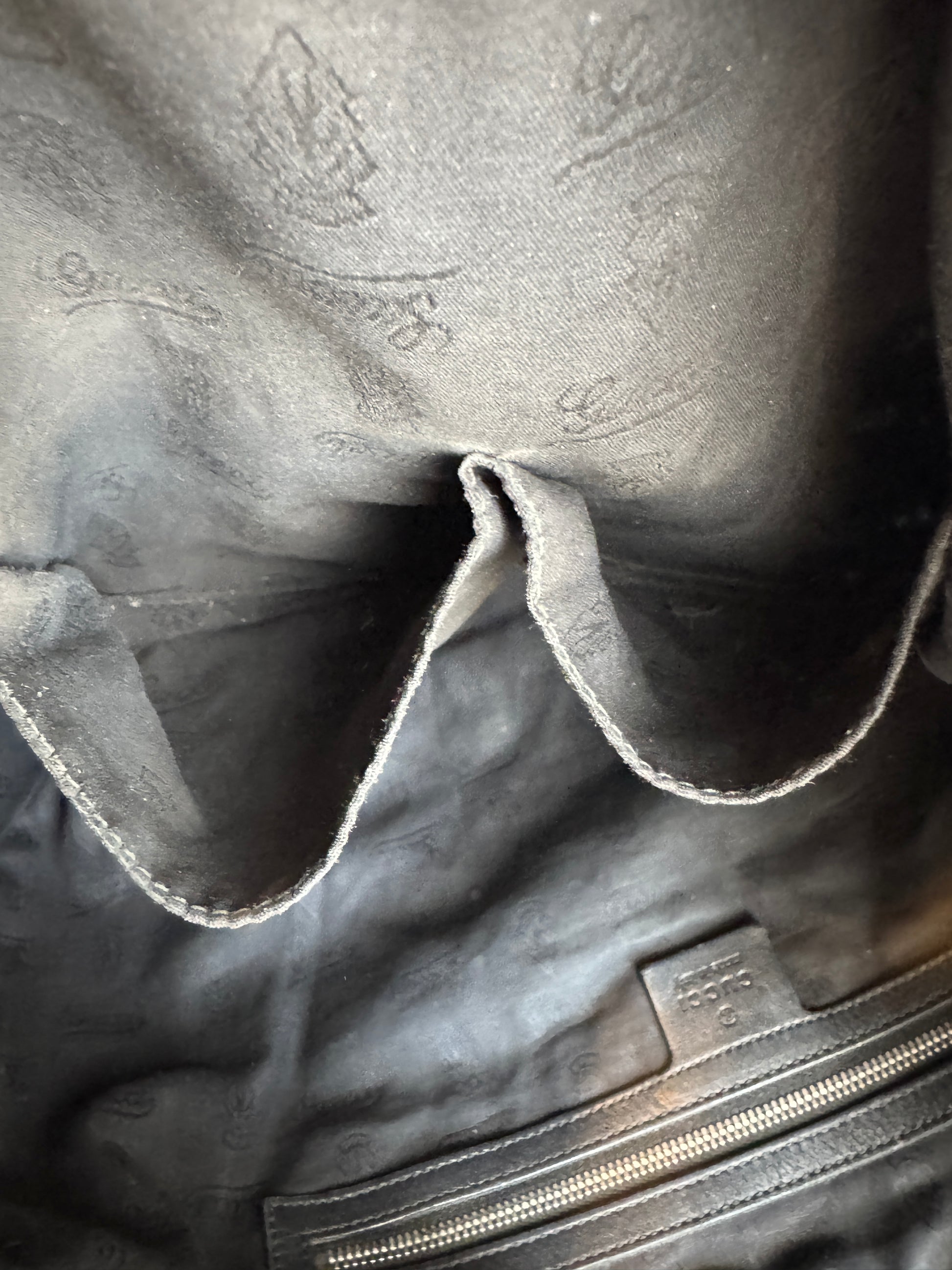 - Hardware: Side hardware is brass replacement when strap was repaired. Zipper slider is replaced also and runs smooth & works properly.