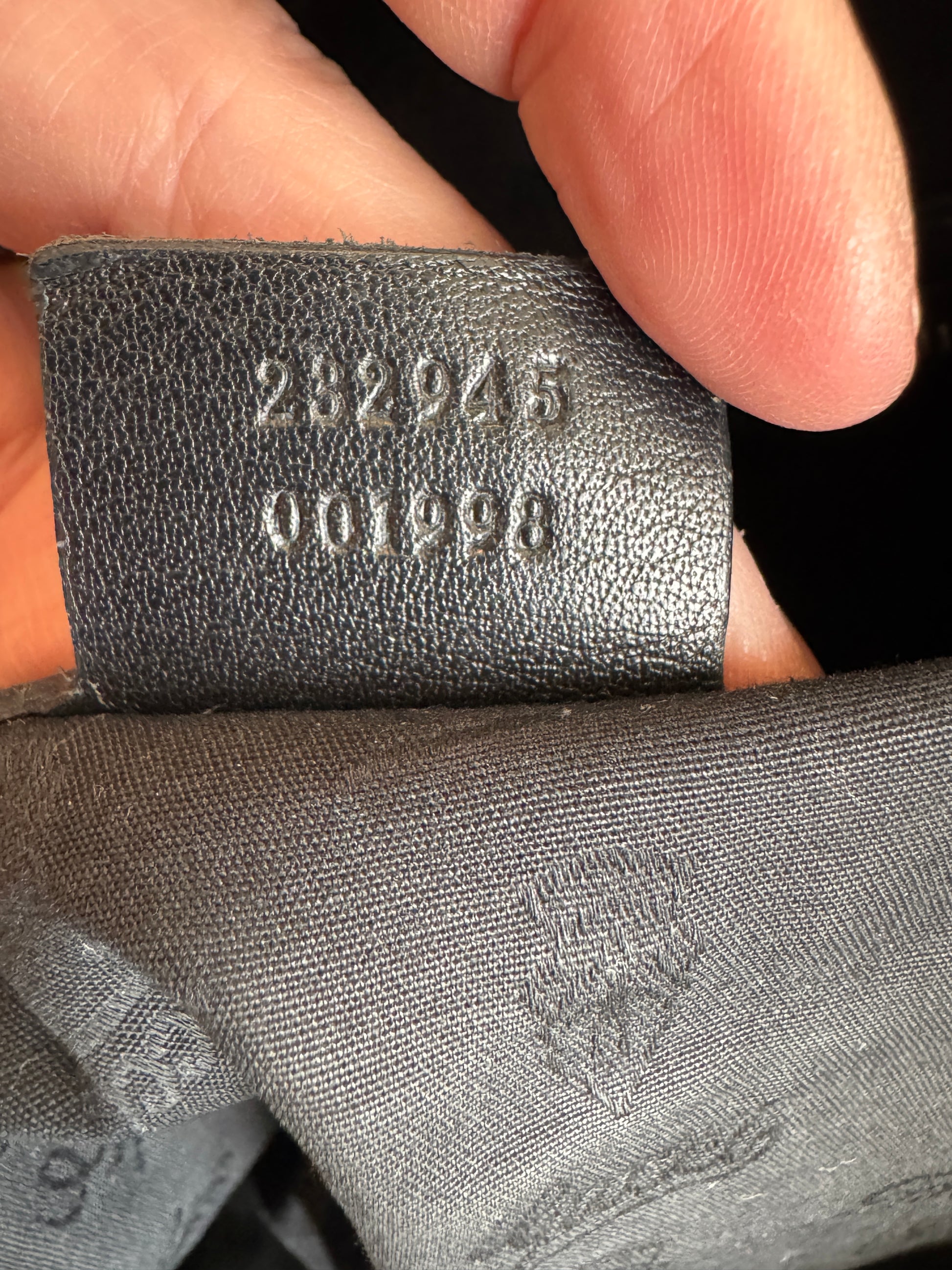 - Exterior Leather: Deep embossing, No Damage. Only some creasing and light scratches from some use. Strap is authentic replacement from a belt. All piping is excellent. Very nice shape, soft.