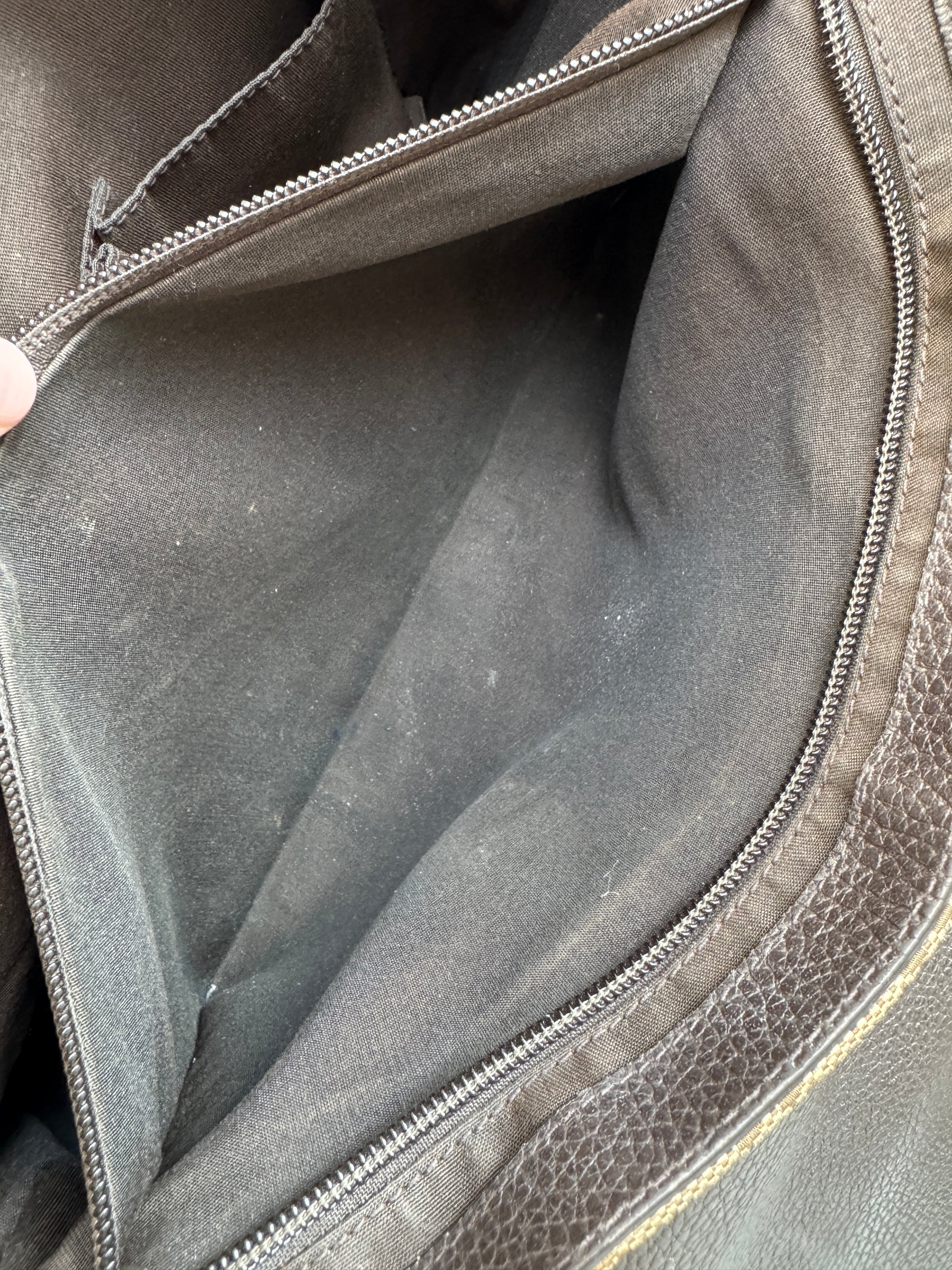 Hardware: New Strap loops and zip pull inside was replaced. Magnet closure is very strong.