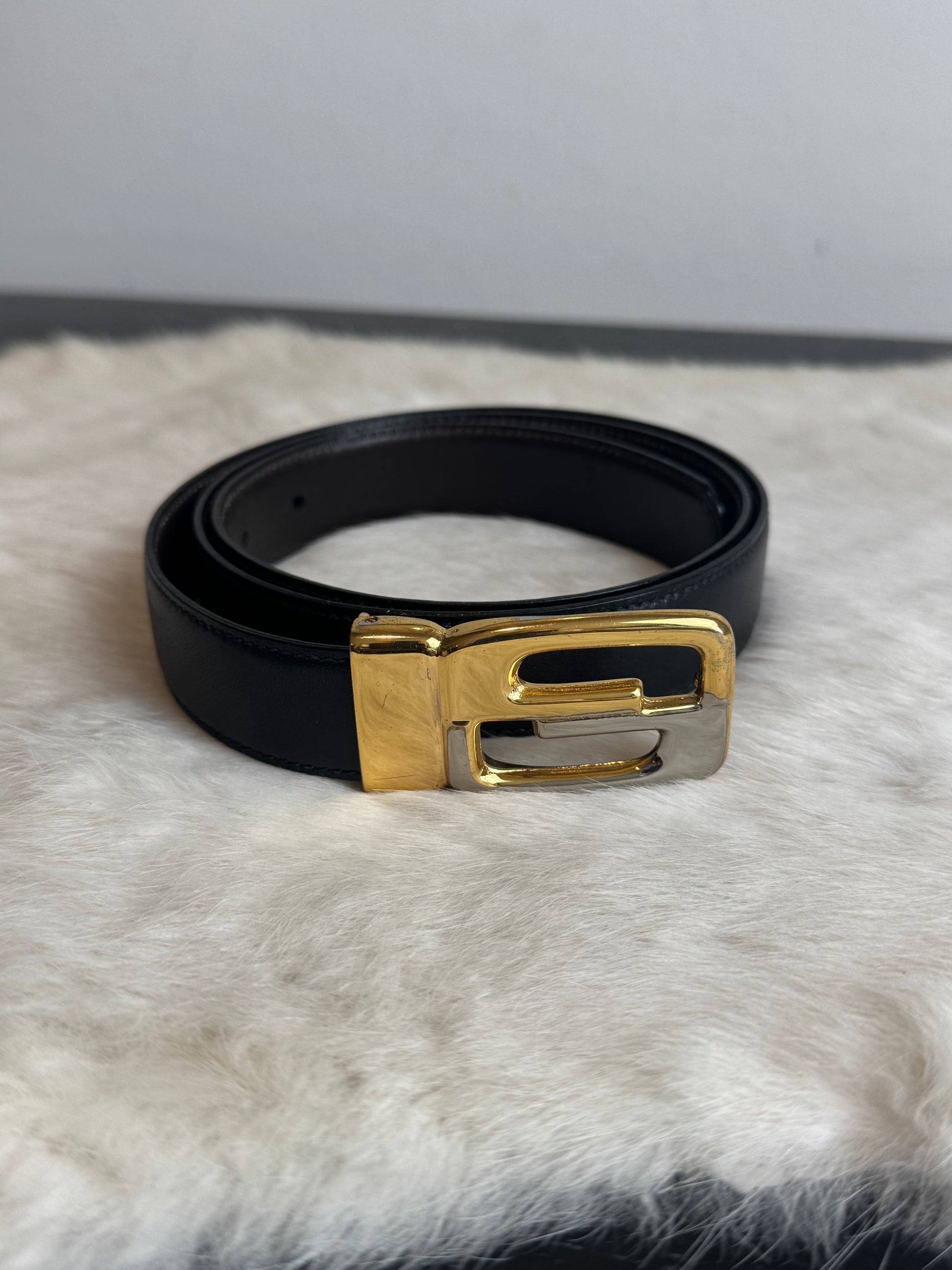 Gucci Parfums Men's Vintage Black Leather Belt Two Tone GG