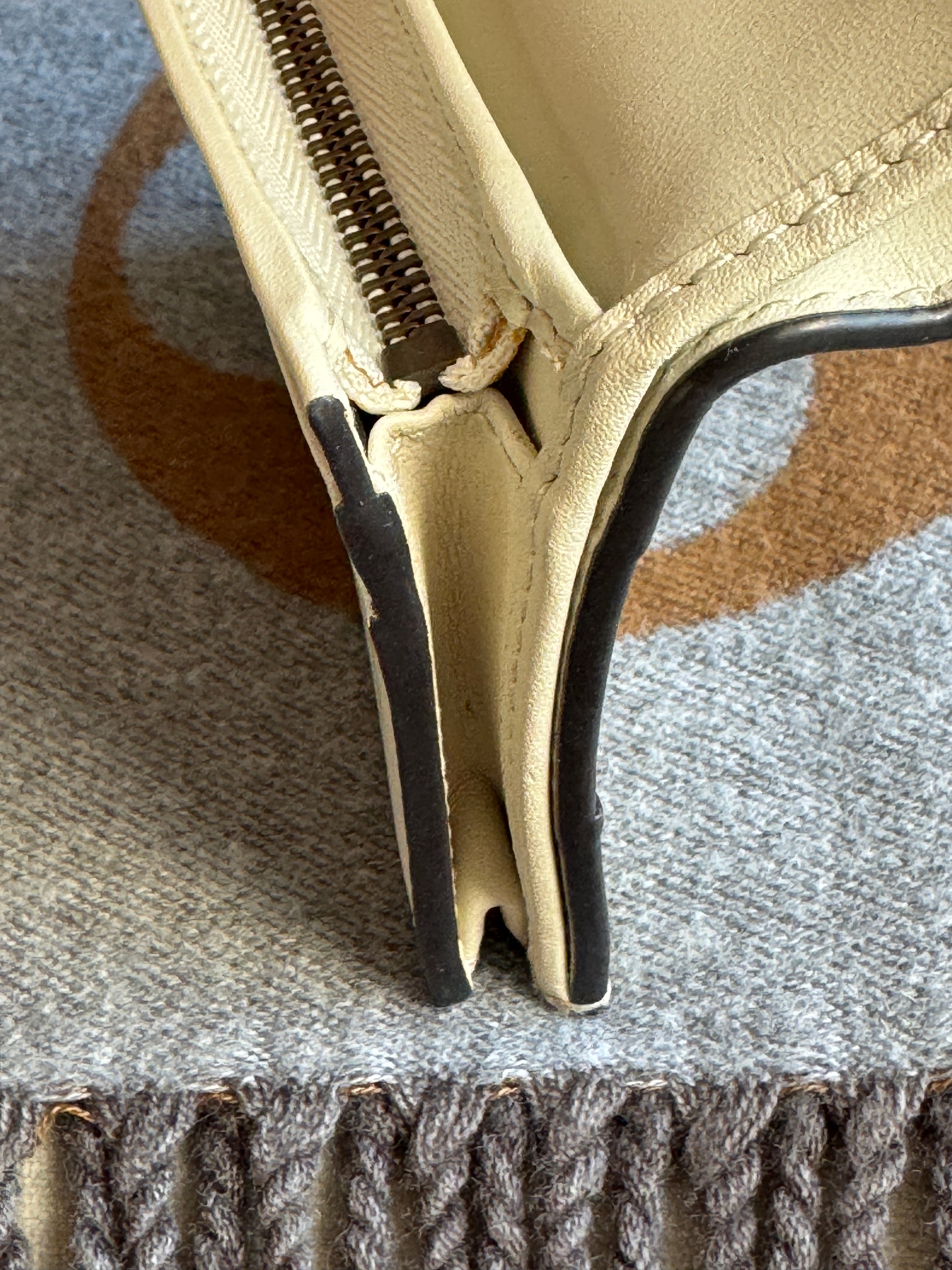 - Interior: The interior is clean and free of any foul odors. Some surface scratches and marks from light use only. Coin zip works great. No odors.