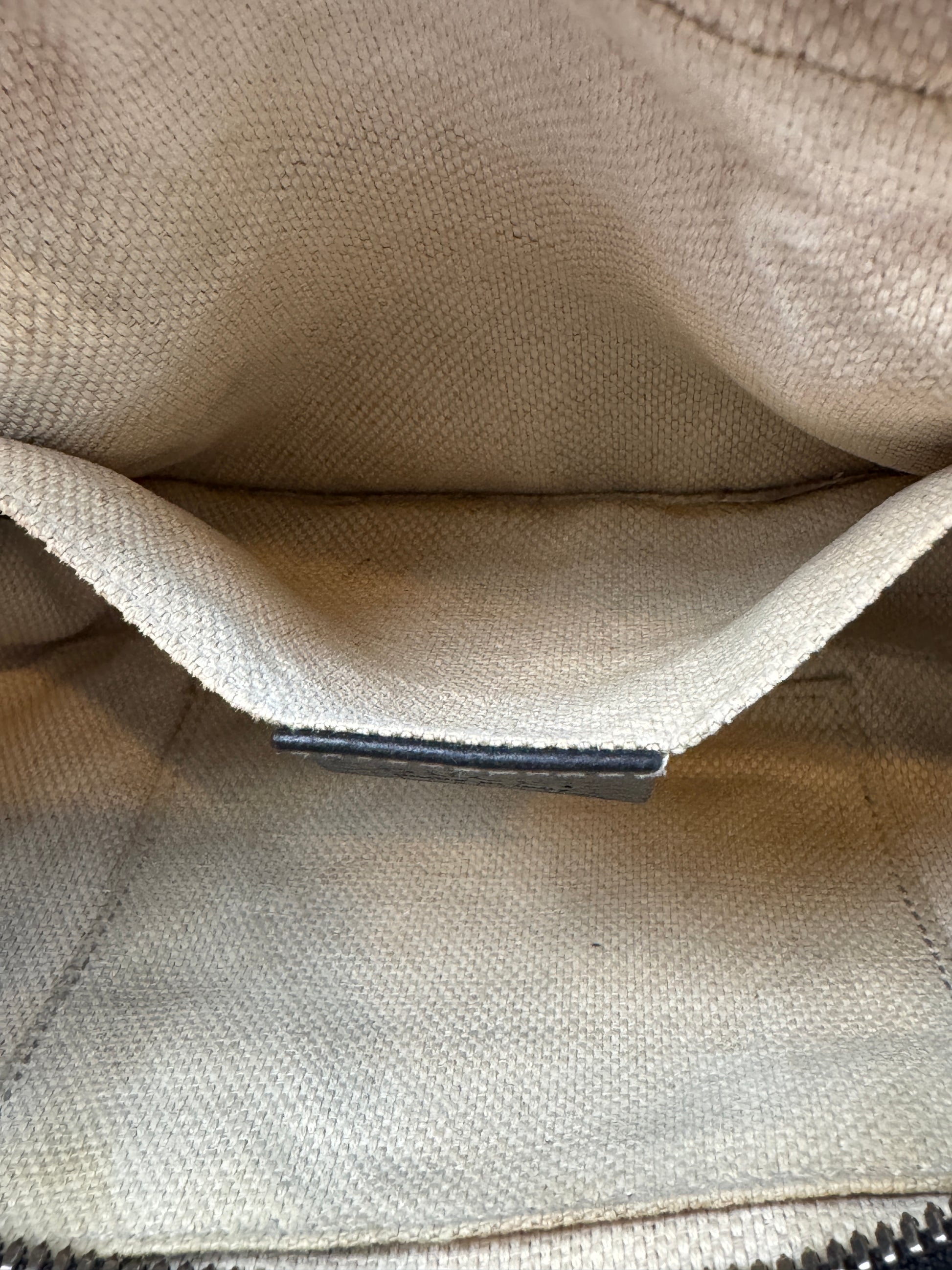 - Zipper pull only was replaced with a genuine leather pull. Teeth and slider are original. Side hardware was replaced with solid brass heavy quality D-rings.