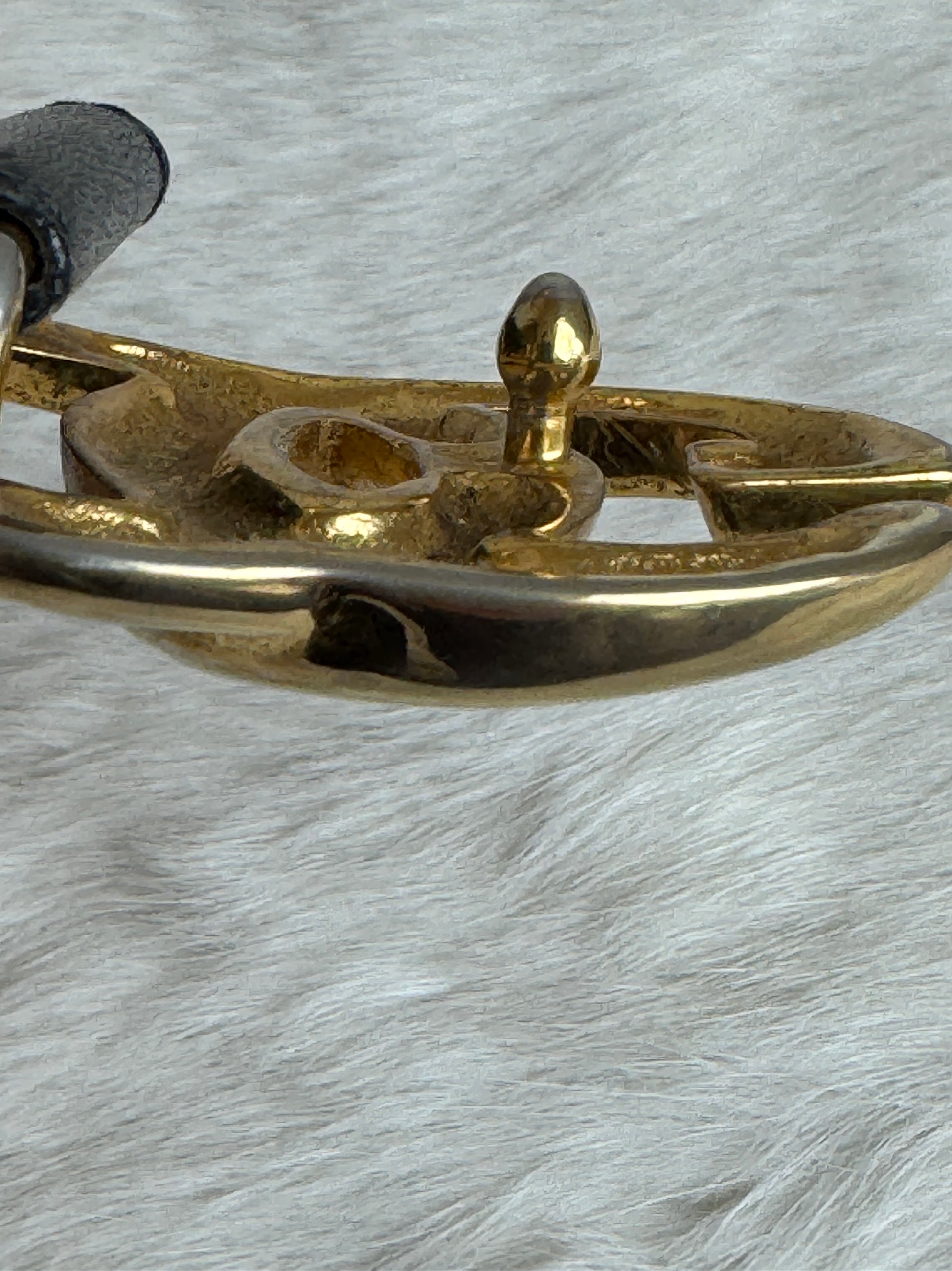 Gucci Vintage Black Leather 1 1/8" Belt Gold GG