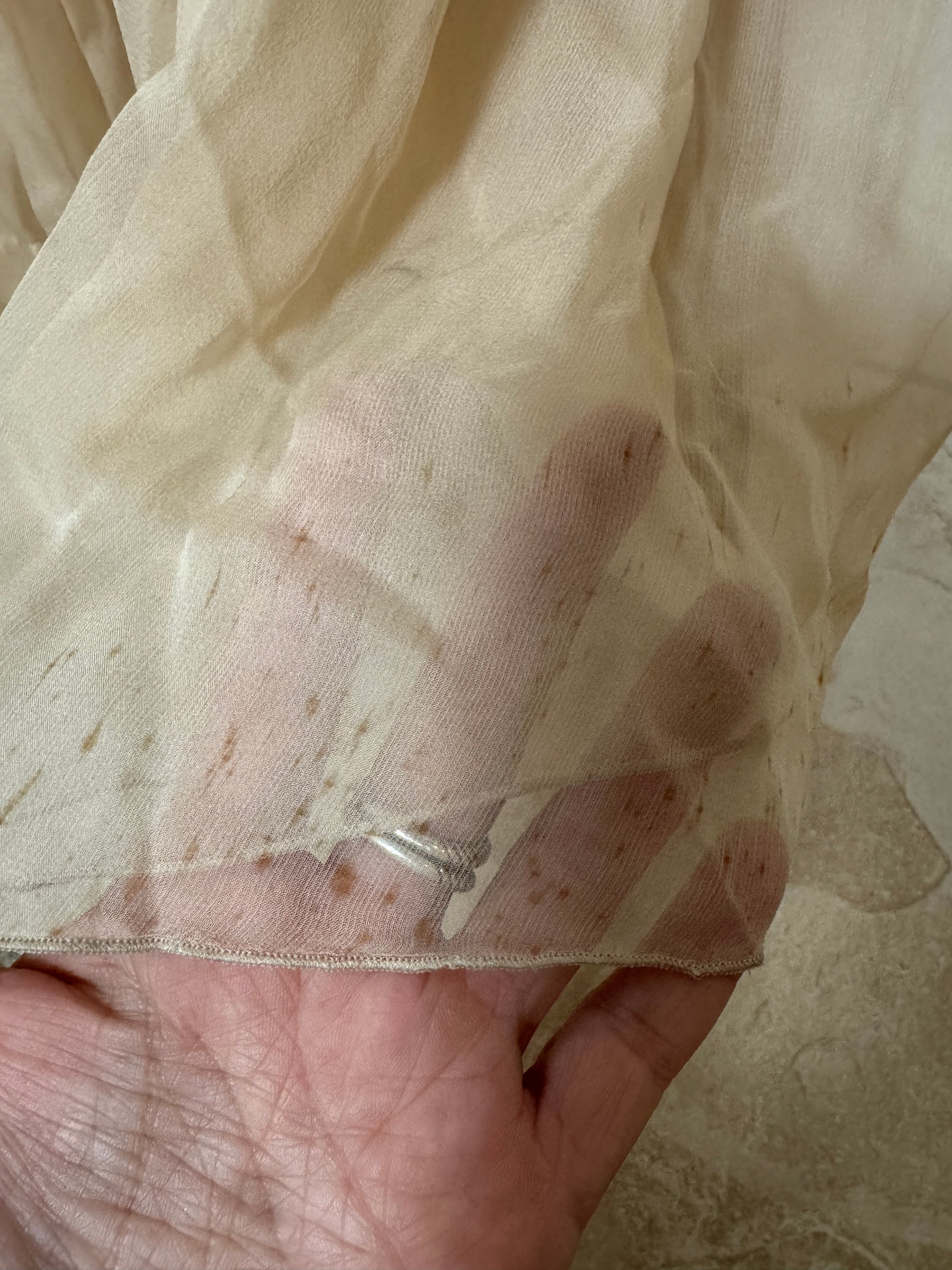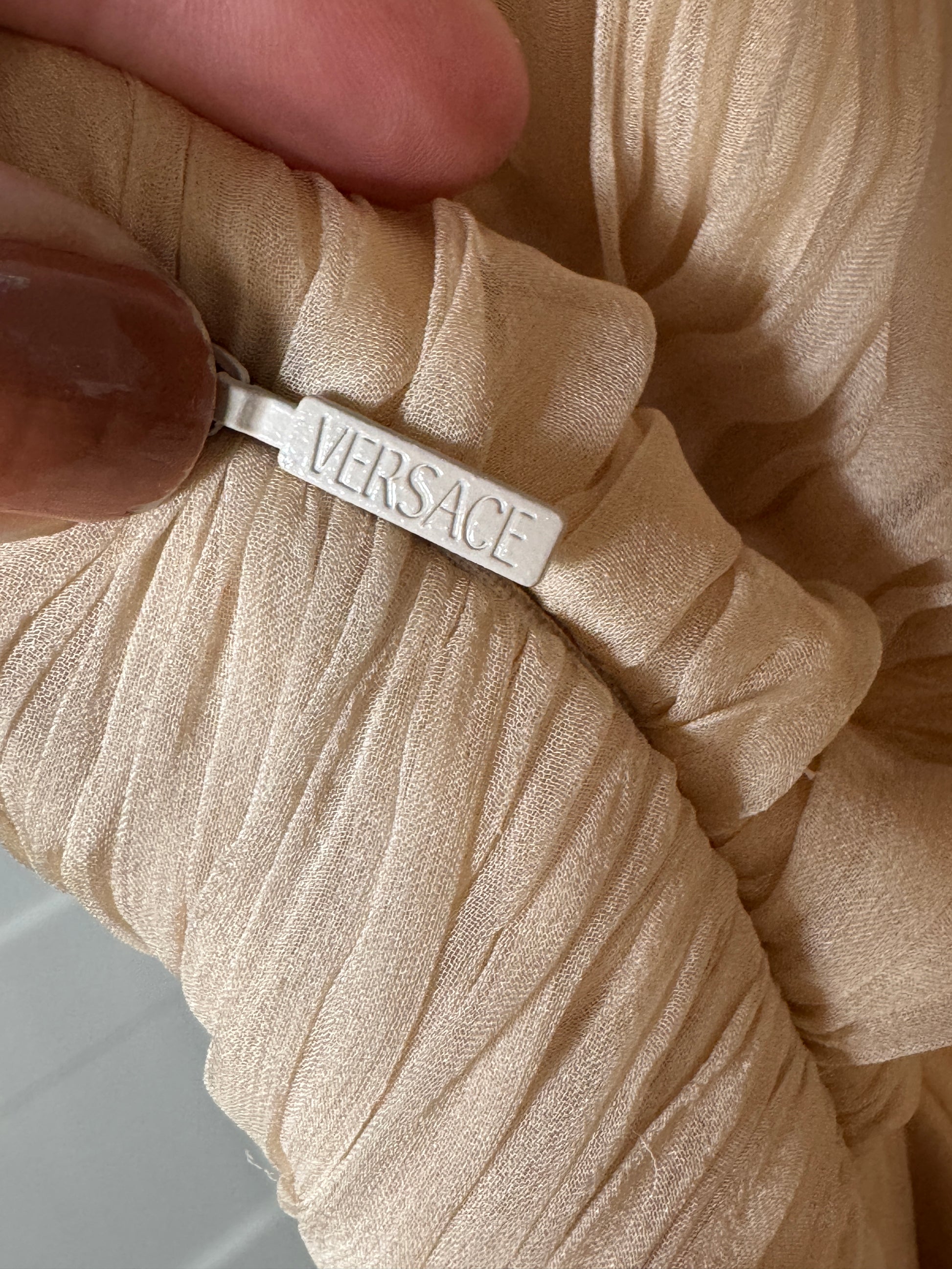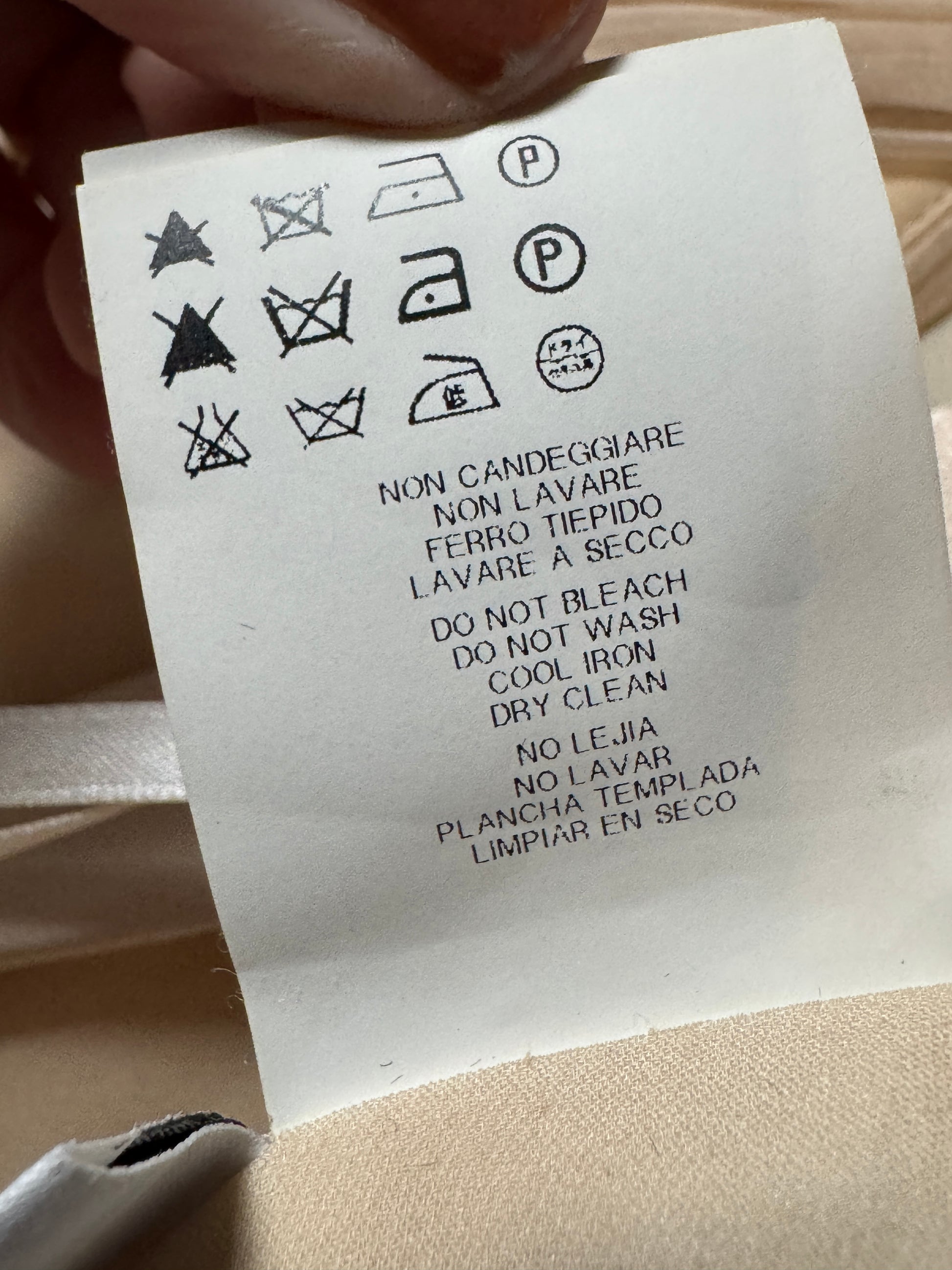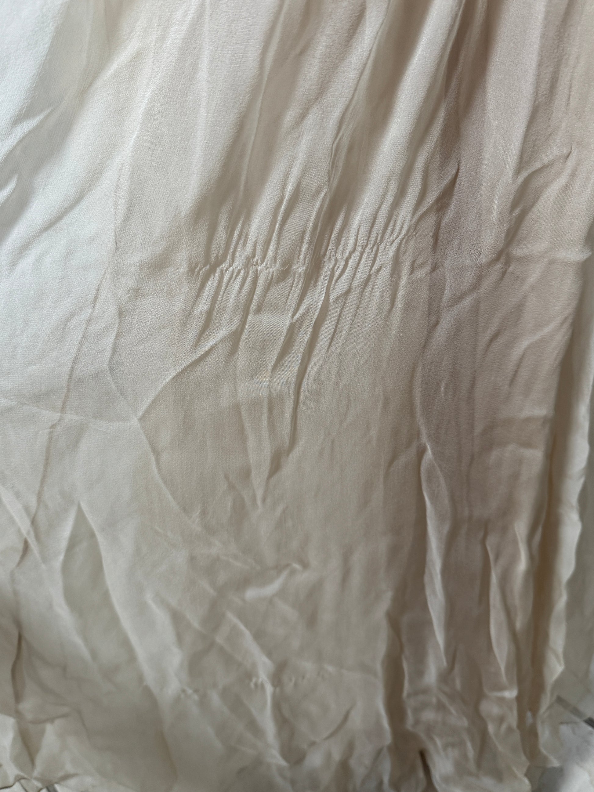 This gown is unworn but has a few small spots (can be dry cleaned). There are a few loose threads and snags here and there but you cannot see them with all the tucks and pleats. Perfect for a special event, wedding, party, evening affair.